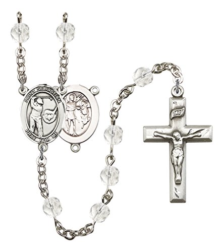 April Birth Month Prayer Bead Rosary with Patron Saint Centerpiece, 19 Inch