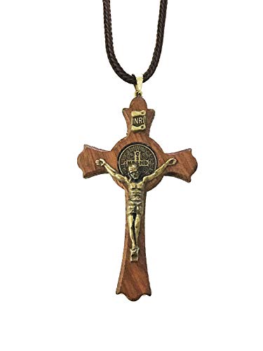 • Catholica Shop Saint Benedict Medal Wood Crucifix Cord Necklace for Men & Women – Handcrafted Religious Pendant, Healing, Travel Protection, Perfect for Gifting on Special Occasions, Made in Brazil $12.99