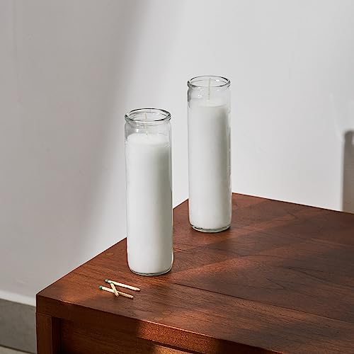 Simply Soson 2×8 inch 7 Day White Pillar Candles in Glass Set of 3, Up to 90 Hour Burn time, Unscented Prayer, Religious Candles for Memorials, Vigil, and Emergency
